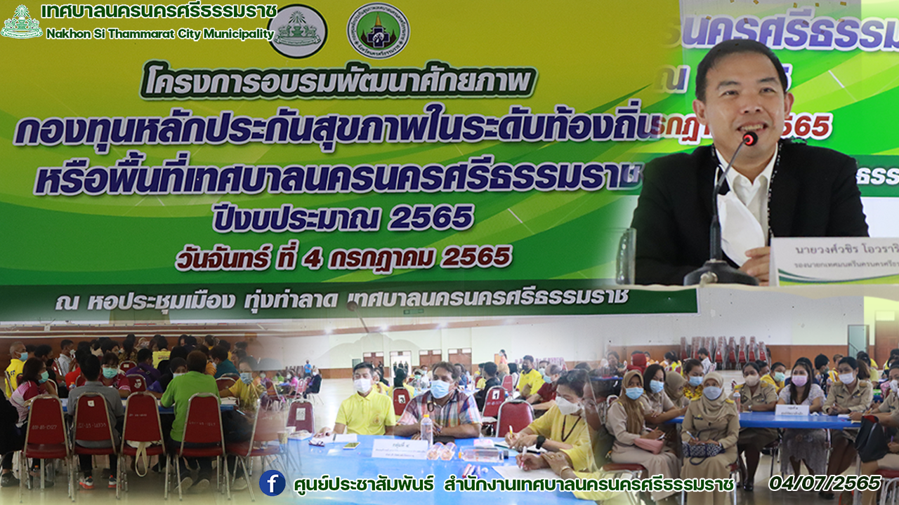 ดร.วงศ์วชิร โอวารินท์ รองนายกเทศมนตรีฯ เป็นประธานพิธีเปิดโครงการอบรมศักยภาพกองทุนหลักประกันสุขภาพในระดับท้องถิ่นหรือพื้นที่เทศบาลนครนครศรีธรรมราช ปีงบประมาณ 2565 |