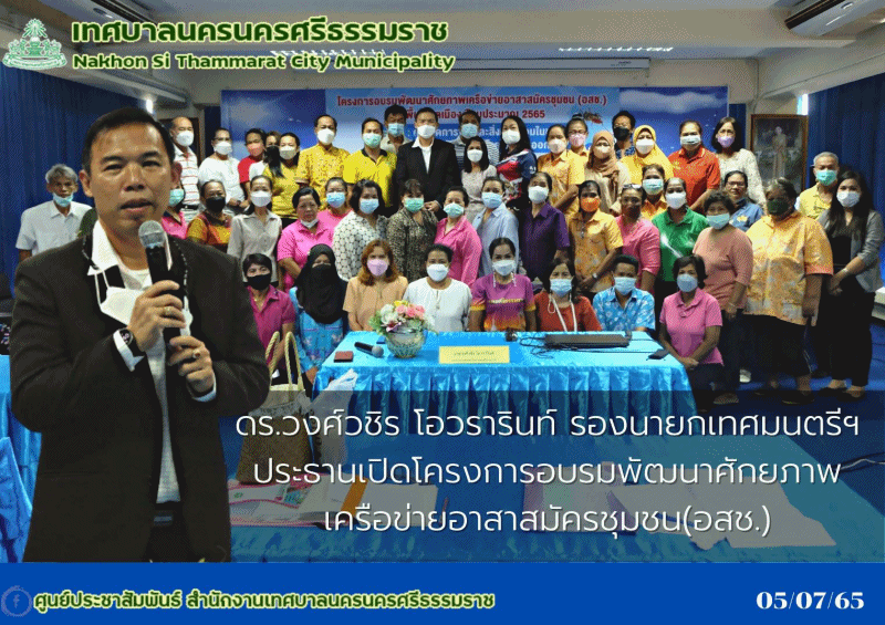 ดร.วงศ์วชิร โอวรารินท์ รองนายกเทศมนตรีนครนครศรีธรรมราช ประธานเปิดโครงการอบรมพัฒนาศักยภาพเครือข่ายอาสาสมัครชุมชน (อสช.) |
