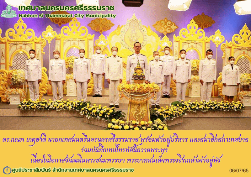 นายกเทศมนตรีนครนครศรีธรรมราช พร้อมด้วยคณะผู้บริหาร ร่วมบันทึกเทปโทรทัศน์ถวายพระพร เนื่องในโอกาสวันเฉลิมพระชนมพรรษา พระบาทสมเด็จพระวชิรเกล้าเจ้าอยู่หัว |