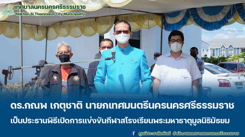 ดร.กณพ เกตุชาติ นายกเทศมนตรีนครนครศรีธรรมราช เป็นประธานในพิธีเปิดการแข่งขันกีฬาสี โรงเรียนพระมหาธาตุมูลนิธิมัธยม ประจำปีการศึกษา 2565 |