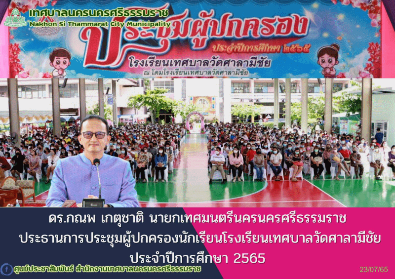 ดร.กณพ เกตุชาติ นายกเทศมนตรีนครนครศรีธรรมราช เป็นประธานประชุมผู้ปกครองนักเรียนโรงเรียนเทศบาลวัดศาลามีชัย ประจำปีการศึกษา 2565 |
