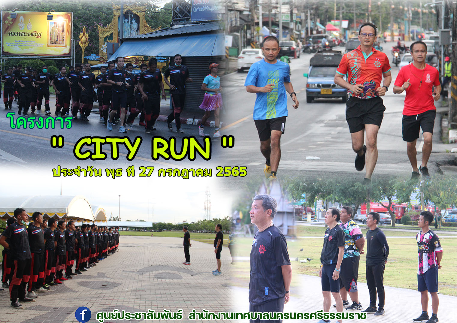 นายกเทศมนตรีนครนครศรีธรรมราช พร้อมผู้บริหาร เจ้าหน้าที่ป้องกันและบรรเทาสาธารณภัย ประชาชนทั่วไป วิ่งออกกำลังกาย " CITY RUN " ทุกวันพุธ