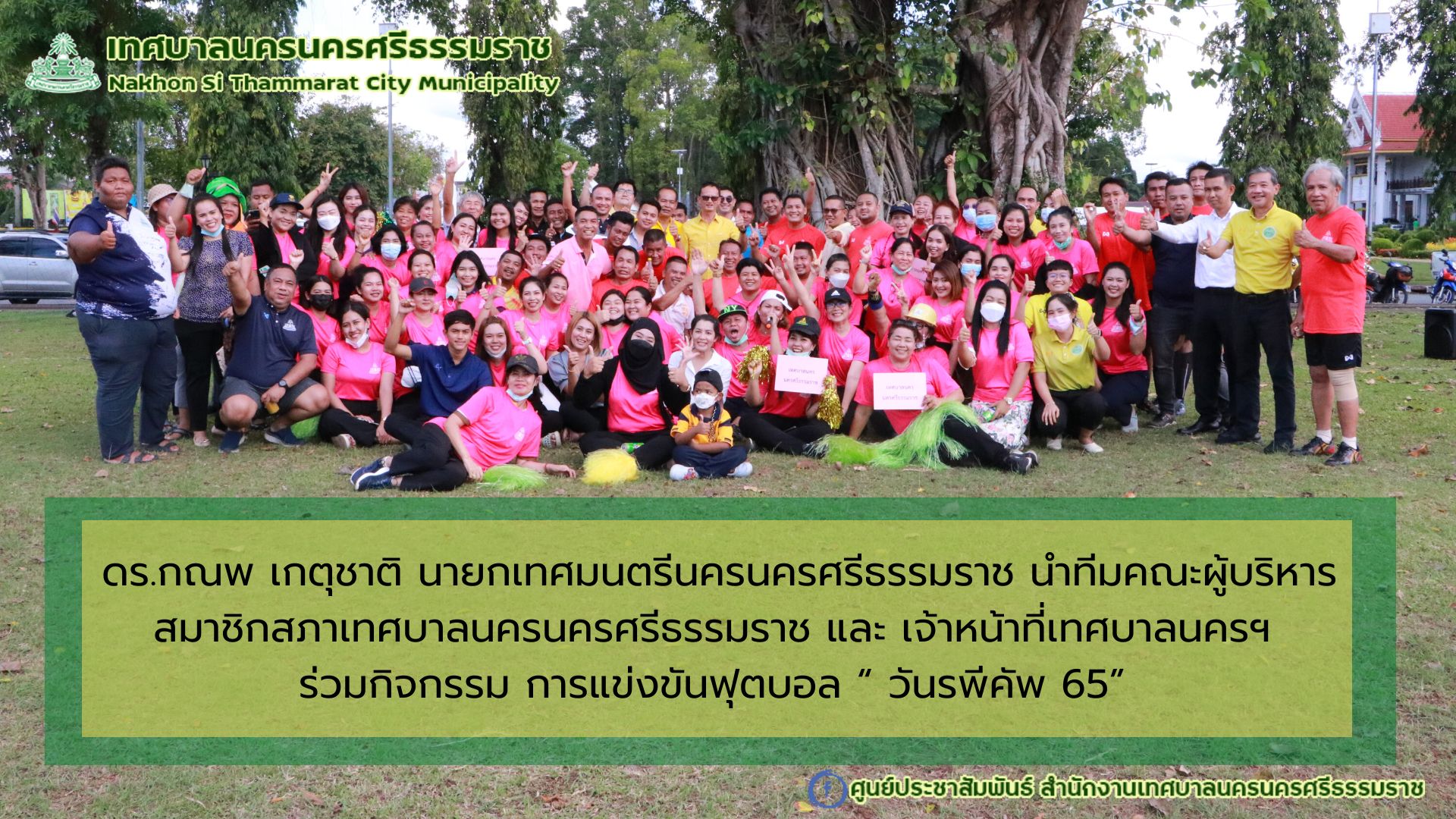 นายกเทศมนตรีนครนครศรีธรรมราช นำทีมคณะผู้บริหาร สมาชิกสภาเทศบาลนครนครศรีธรรมราช และ เจ้าหน้าที่เทศบาลนครฯ ร่วมกิจกรรม การแข่งขันฟุตบอล “ วันรพีคัพ 65” |