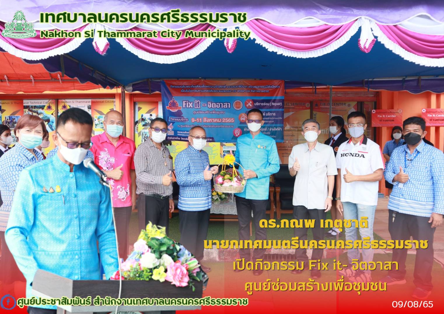 ดร.กณพ เกตุชาติ นายกเทศมนตรีนครนครศรีธรรมราช ประธานพิธีเปิดกิจกรรมศูนย์ซ่อมสร้างเพื่อชุมชน (Fix it–จิตอาสา) เฉลิมพระเกียรติสมเด็จพระนางเจ้าสิริกิติ์ พระบรมราชินีนาถ พระบรมราชชนนีพันปีหลวง เนื่องในโอกาสมหามงคลเฉลิมพระชนมพรรษา 90 พรรษา(12 สิงหาคม 2565) |