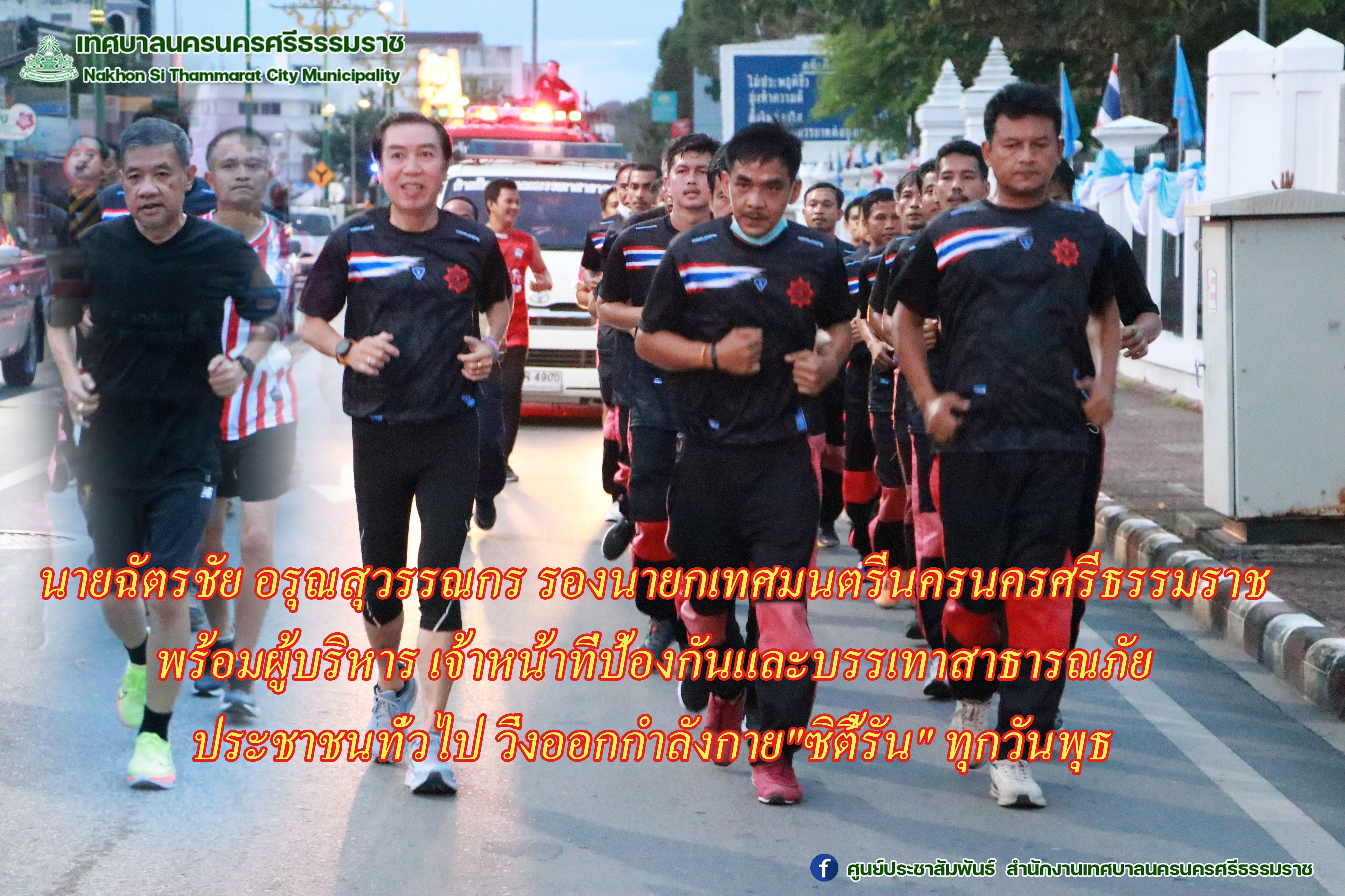 รองนายกเทศมนตรีนครนครศรีธรรมราช พร้อมผู้บริหาร เจ้าหน้าที่ป้องกันและบรรเทาสาธารณภัย ประชาชนทั่วไป วิ่งออกกำลังกาย "ซิตี้รัน" ทุกวันพุธ |