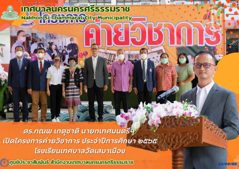 ดร.กณพ เกตุชาติ นายกเทศมนตรีนครนครศรีธรรมราช เปิดโครงการค่ายวิชาการ ประจำปีการศึกษา 2565 โรงเรียนเทศบาลวัดเสมาเมือง |