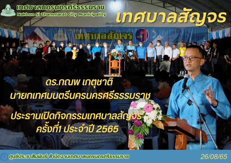 ดร.กณพ เกตุชาติ นายกเทศมนตรีนครนครศรีธรรมราช ประธานเปิดกิจกรรมเทศบาลสัญจร ครั้งที่1 ประจำปี 2565 |