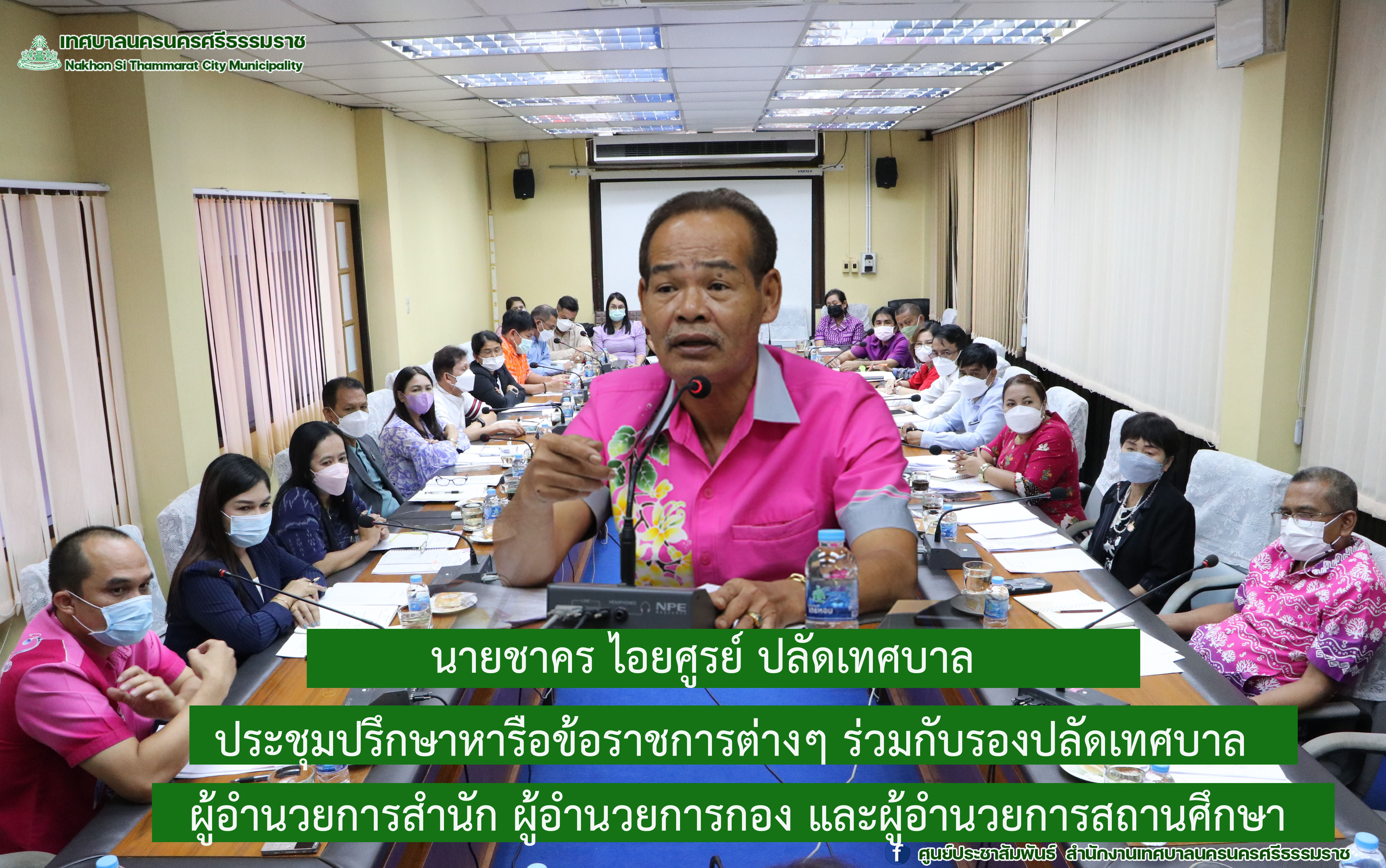 วันอังคาร ที่ 30 สิงหาคม 2565 เวลา 10.00 น. ณ ห้องประชุมเทศบาลนครนครศรีธรรมราช (ชั้น 2 ) นายชาคร ไอยศูรย์ ปลัดเทศบาล ประชุมปรึกษาหารือข้อราชการต่างๆ ร่วมกับรองปลัดเทศบาล ผู้อำนวยการสำนัก ผู้อำนวยการกอง และผู้อำนวยการสถานศึกษา