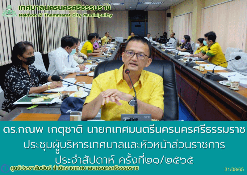 ดร.กณพ เกตุชาติ นายกเทศมนตรีนครนครศรีธรรมราช ประชุมผู้บริหารเทศบาล และหัวหน้าส่วนราชการ ประจำสัปดาห์ ครั้งที่ 21/2565 |