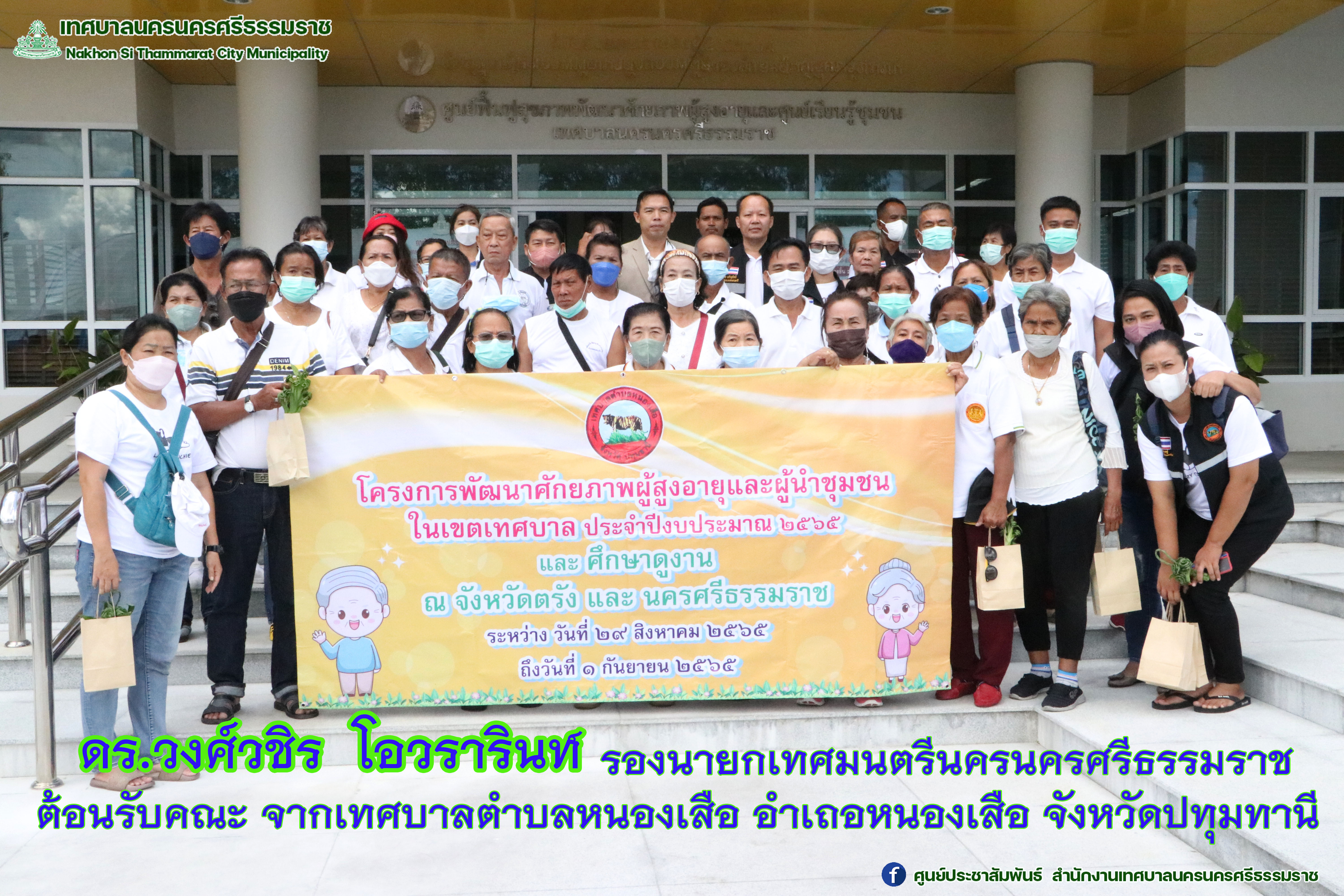 วันพฤหัสบดีที่ 1 กันยายน พ.ศ. 2565 เวลา 10.30 น. ณ ห้องประชุมกองสวัสดิการสังคม ชั้น 1 ดร.วงศ์วชิร โอวรารินท์ รองนายกเทศมนตรีนครนครศรีธรรมราช พร้อมสมาชิกสภาเทศบาล ต้อนรับคณะ จากเทศบาลตำบลหนองเสือ อำเถอหนองเสือ จังหวัดปทุมทานี ซึ่งมาเยี่ยมชมและศึกษาดูงานศูนย์ผู้สูงอายุ (ศูนย์ฟื้นฟูสุขภาพพัฒนาศักยภาพผู้สูงอายุ) กองสวัสดิการสังคมเทศบาลนครนครศรีธรรมราช ภายใต้โครงการพัฒนาศักยภาพผู้สูงอายุและผู้นำชุมชนในเขตเทศบล ประจำปีงบประมาณ 2565