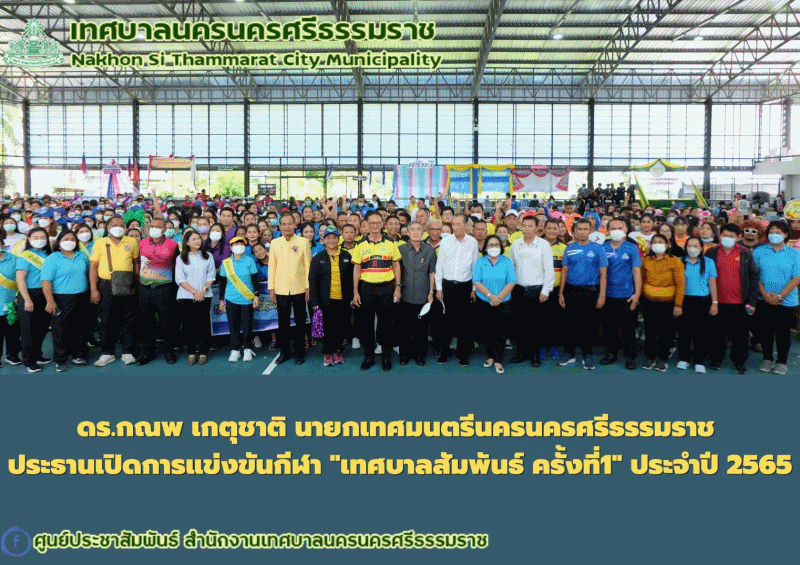 ดร.กณพ เกตุชาติ นายกเทศมนตรีนครนครศรีธรรมราช เป็นประธานในพิธีเปิดการแข่งขันกีฬา “เทศบาลสัมพันธ์ ครั้งที่1” ประจำปี 2565 |
