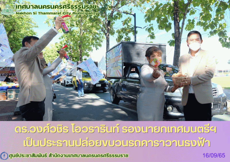 ดร.วงศ์วชิร โอวรารินท์ รองนายกเทศมนตรีนครนครศรีธรรมราช เป็นประธานปล่อยขบวนรถคาราวานธงฟ้า |