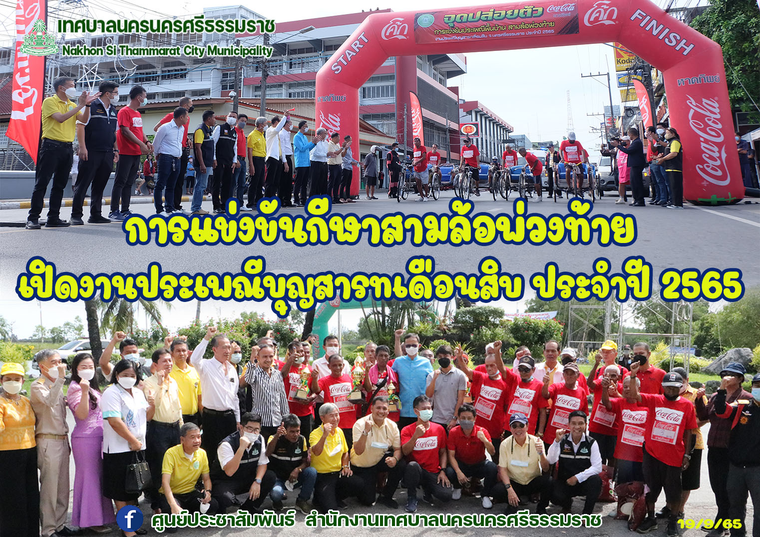 วันจันทร์ที่ 19 กันยายน พ.ศ. 2565 เวลา 09.00 น. ณ บริเวณถนนคนเดินหน้าสวนพระเงิน ดร.กณพ เกตุชาติ นายกเทศมนตรีนครนครศรีธรรมราช เป็นประธานในพิธีเปิดการแข่งขันกีฬาสามล้อพ่วงท้าย เปิดงานประเพณีบุญสารทเดือนสิบ ประจำปี 2565 ซึ่งฝ่ายป้องกันและบรรเทาสาธารณภัย สำนักปลัดเทศบาล จัดกิจกรรมการแข่งขันสามล้อพ่วงท้ายขึ้น โดยใช้เส้นทางการแข่งขันตั้งแต่บริเวณ ถนนคนเดินหน้าสวนพระเงิน ถึงเส้นชัย บริเวณหน้าสวนสัตว์เปิด สวนสมเด็จพระศรีนครินทร์ '84 (ทุ่งท่าลาด) ทั้งนี้เพื่อส่งเสริมอนุรักษ์สามล้อถีบ ซึ่งเป็นตำนานรถสามล้อโดยสารที่มีมาแต่อดีตกาลของนครศรีธรรมราช และส่งเสริมรักษาประเพณีงานบุญสารทเดือนสิบให้อยู่คู่จังหวัดนครศรีธรรมราช ให้คงไว้สืบไป รุ่นอายุ 45-59 ปี รางวัลชนะเลิศ อันดับ 1 ได้แก่ นายสมรักษ์ เจ๊ะสมัน รางวัลชนะเลิศ อันดับ 2 ได้แก่ นายบัญหาร ช่วยเหลือ รางวัลชนะเลิศ อันดับ 3 ได้แก่ นายประดิษฐ์ ดาราจร รุ่นอายุ 60-70 ปี รางวัลชนะเลิศ อันดับ 1 ได้แก่ นายประภาส ตรงต่อการ รางวัลชนะเลิศ อันดับ 2 ได้แก่ นายสมศักดิ์ โพธิ์น้อย รางวัลชนะเลิศ อันดับ 3 ได้แก่ นายสุชล สิงจตรีพงษ์ รุ่นอายุ 71 ปี ขึ้นไป รางวัลชนะเลิศ อันดับ 1 ได้แก่ นายไชยรงค์ กาบแก้ว รางวัลชนะเลิศ อันดับ 2 ได้แก่ นายชุมพล สุปรานนท์ รางวัลชนะเลิศ อันดับ 3 ได้แก่ นายวิเชียร ภักดิ์ษา โดยรางวัลชนะเลิศ อันดับ 1 รับเงินสด 4,000 บาท พร้อมถ้วยรางวัล และข้าวสาร 1 ถุง รางวัลชนะเลิศ อันดับ 2 รับเงินสด 2,500 บาท พร้อมถ้วยรางวัล และข้าวสาร 1 ถุง รางวัลชนะเลิศ อันดับ 3 รับเงินสด 1,500 บาท พร้อมถ้วยรางวัล และข้าวสาร 1 ถุง และผู้เข้าร่วมการแข่งขันจะได้รับเงินสด จำนวน 1,000 บาท พร้อมข้าวสาร 1 ถุง ทุกท่าน