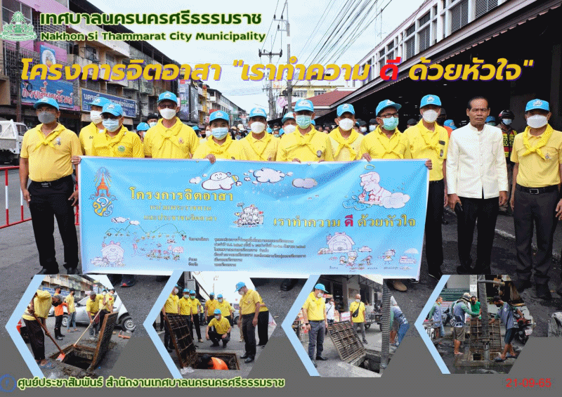 วันพุธ ที่21 กันยายน 2565 เวลา 08.30 น. ดร.กณพ เกตุชาติ นายกเทศมนตรีนครนครศรีธรรมราช เปิดโครงการจิตอาสา “เราทำความ ดี ด้วยหัวใจ” ครั้งที่ 6 ณ ตลาดสดเทศบาลนครนครศรีธรรมราช พร้อมด้วยผู้บริหาร หัวหน้าส่วนราชการ สมาชิกสภาเทศบาล พนักงานเทศบาลกอง ฝ่าย สำนักฯ ทั้งนี้ เทศบาลนครนครศรีธรรมราช ทำกิจกรรมร่วมกับเรือนจำกลางนครศรีธรรมราช และ ทัณฑสถานวัยหนุ่มนครศรีธรรมราช ขุดลอกท่อระบายน้ำ เพื่อแก้ปัญหาท่อระบายน้ำอุดตัน และป้องกันน้ำท่วมในเขตเทศบาล ซึ่งโครงการดังกล่าวนี้ร่วมพัฒนากันเป็นเวลา 3 วัน ตั้งแต่วันที่ 21-23 กันยายน 2565 เวลา 08.30 -16.30 น. ดังนี้