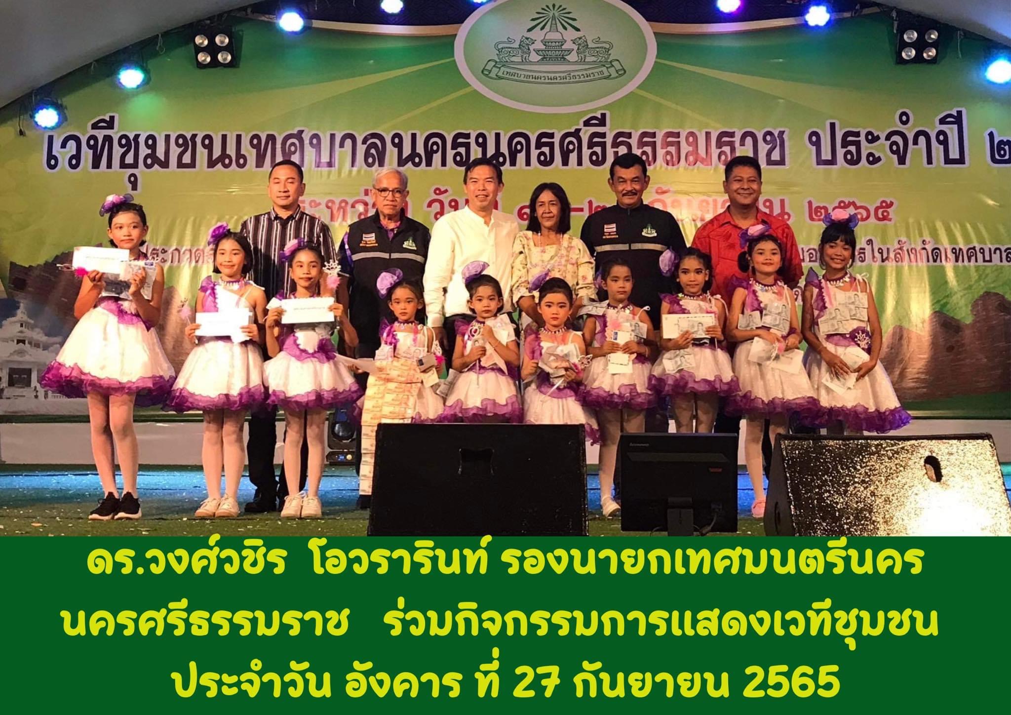ดร.วงศ์วชิร โอวรารินท์ รองนายกเทศมนตรีนครนครศรีธรรมราช ร่วมกิจกรรมการแสดงเวทีชุมชน ในงานประเพณีบุญสารทเดือนสิบ ประจำปี 2565 |