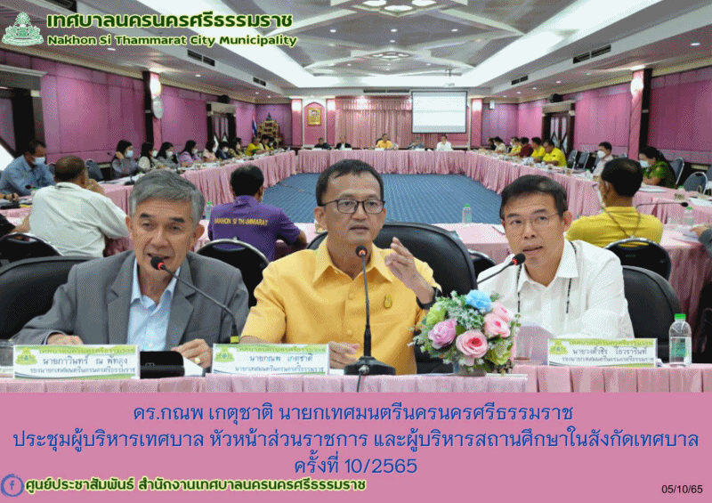 ดร.กณพ เกตุชาติ นายกเทศมนตรีนครนครศรีธรรมราช ประชุมผู้บริหารเทศบาล หัวหน้าส่วนราชการ และผู้บริหารสถานศึกษาในสังกัดเทศบาล ครั้งที่ 10/2565 |