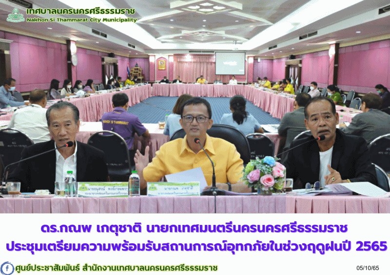 ดร.กณพ เกตุชาติ นายกเทศมนตรีนครนครศรีธรรมราช ประชุมเตรียมความพร้อมรับสถานการณ์อุทกภัยในช่วงฤดูฝนปี 2565 |