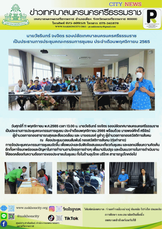 นายวัชรินทร์ จงจิตร รองปลัดเทศบาลนครนครศรีธรรมราช เป็นประธานการประชุมคณะกรรมการชุมชน ประจำเดือนพฤศจิกายน 2565 |