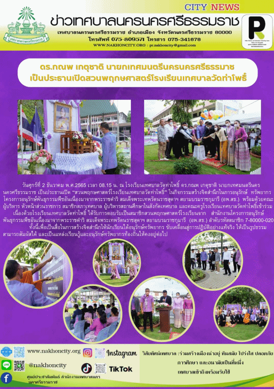 ดร.กณพ เกตุชาติ นายกเทศมนตรีนครนครศรีธรรมาช เป็นประธานเปิดสวนพฤกษศาสตร์โรงเรียนเทศบาลวัดท่าโพธิ์ |