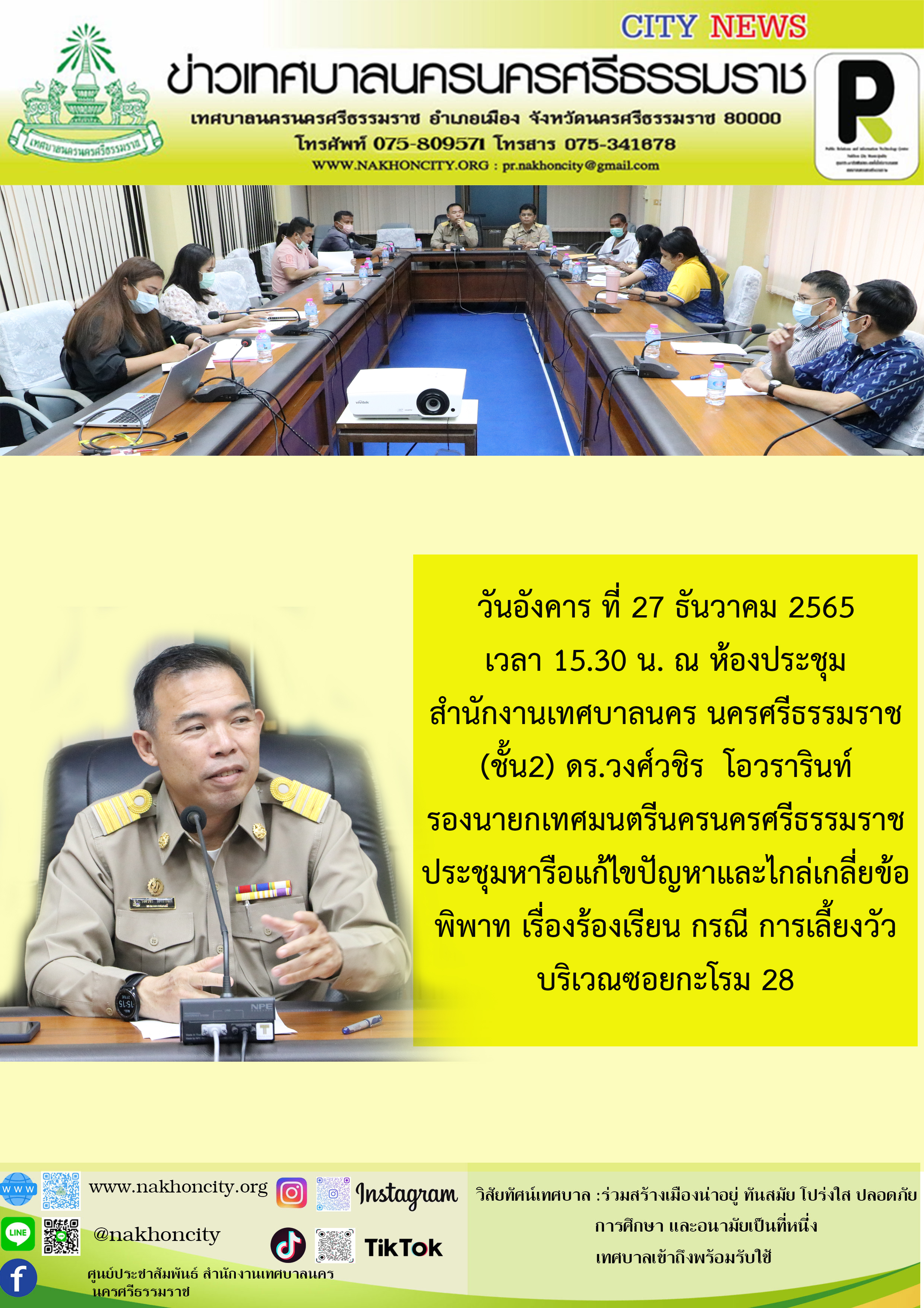 วันอังคาร ที่ 27 ธันวาคม 2565 เวลา 15.30 น. ณ ห้องประชุมสำนักงานเทศบาลนครนครศรีธรรมราช (ชั้น2) ภาพ//ข่าว//ไกรสิทธิ |