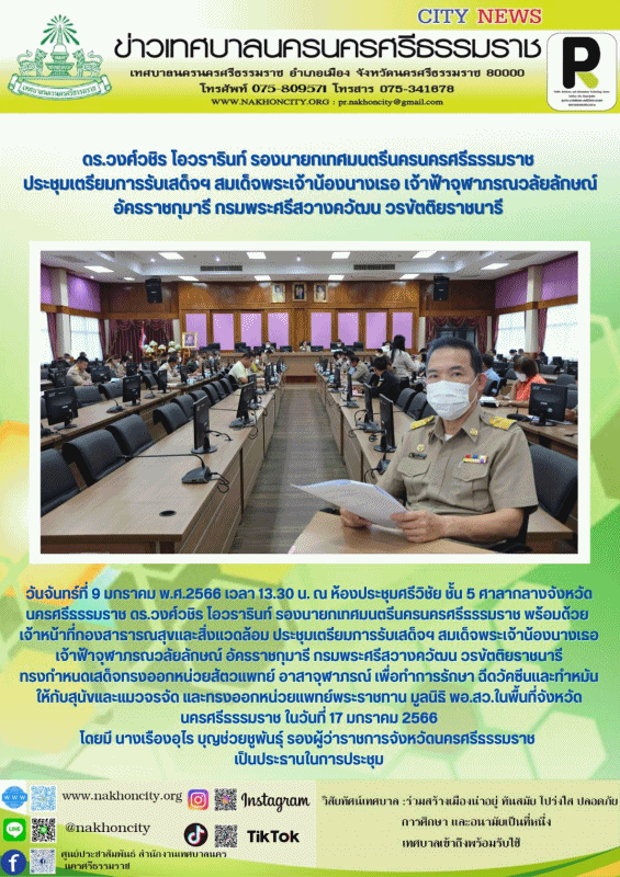ดร.วงศ์วชิร โอวรารินท์ รองนายกเทศมนตรีนครนครศรีธรรมราช ประชุมเตรียมการรับเสด็จฯ สมเด็จพระเจ้าน้องนางเธอ เจ้าฟ้าจุฬาภรณวลัยลักษณ์ อัครราชกุมารี กรมพระศรีสวางควัฒน วรขัตติยราชนารี |