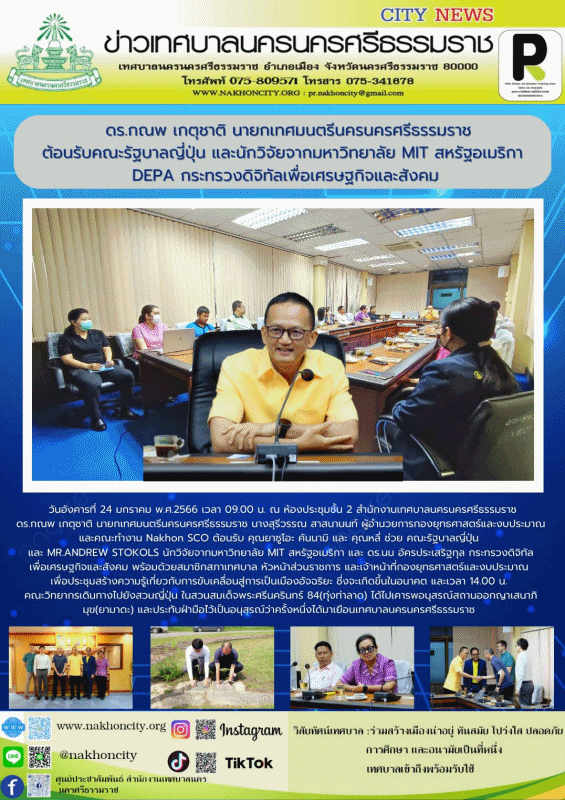 ดร.กณพ เกตุชาติ นายกเทศมนตรีนครนครศรีธรรมราช ต้อนรับคณะรัฐบาลญี่ปุ่น และนักวิจัยจากมหาวิทยาลัย MIT สหรัฐอเมริกา DEPA กระทรวงดิจิทัลเพื่อเศรษฐกิจและสังคม |