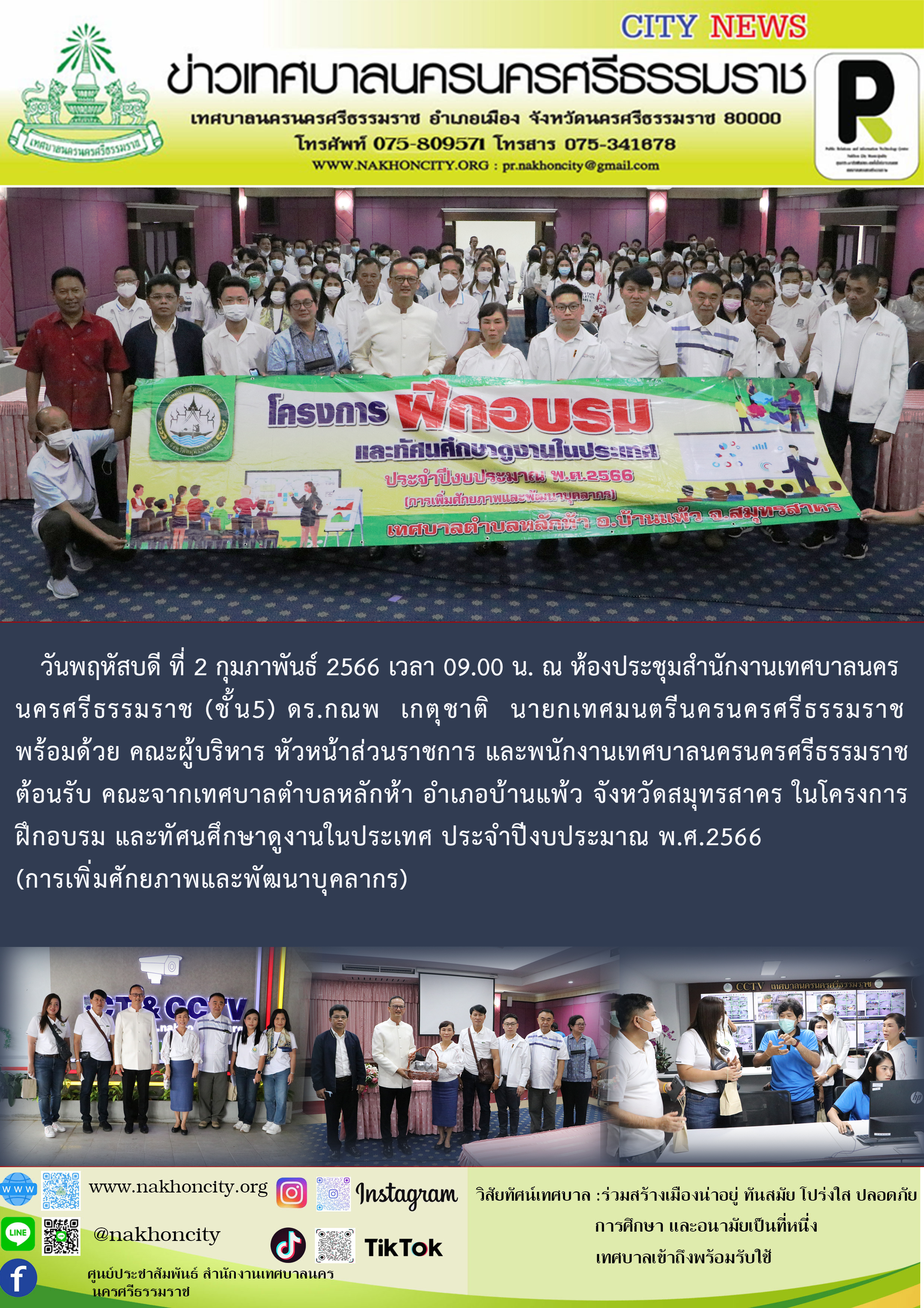 นายกเทศมนตรีนครนครศรีธรรมราช ต้อนรับคณะจากเทศบาลตำบลหลักห้า อำเภอบ้านแพ้ว จังหวัดสมุทรสาคร ในโครงการฝึกอบรม และทัศนศึกษาดูงานในประเทศ ประจำปีงบประมาณ พ.ศ.2566 (การเพิ่มศักยภาพและพัฒนาบุคลากร) |
