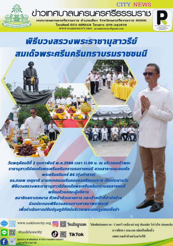 ดร.กณพ เกตุชาติ นายกเทศมนตรีนครนครศรีธรรมราช เป็นประธานในพิธีบวงสรวงพระราชานุสาวรีย์สมเด็จพระศรีนครินทราบรมราชชนนี |
