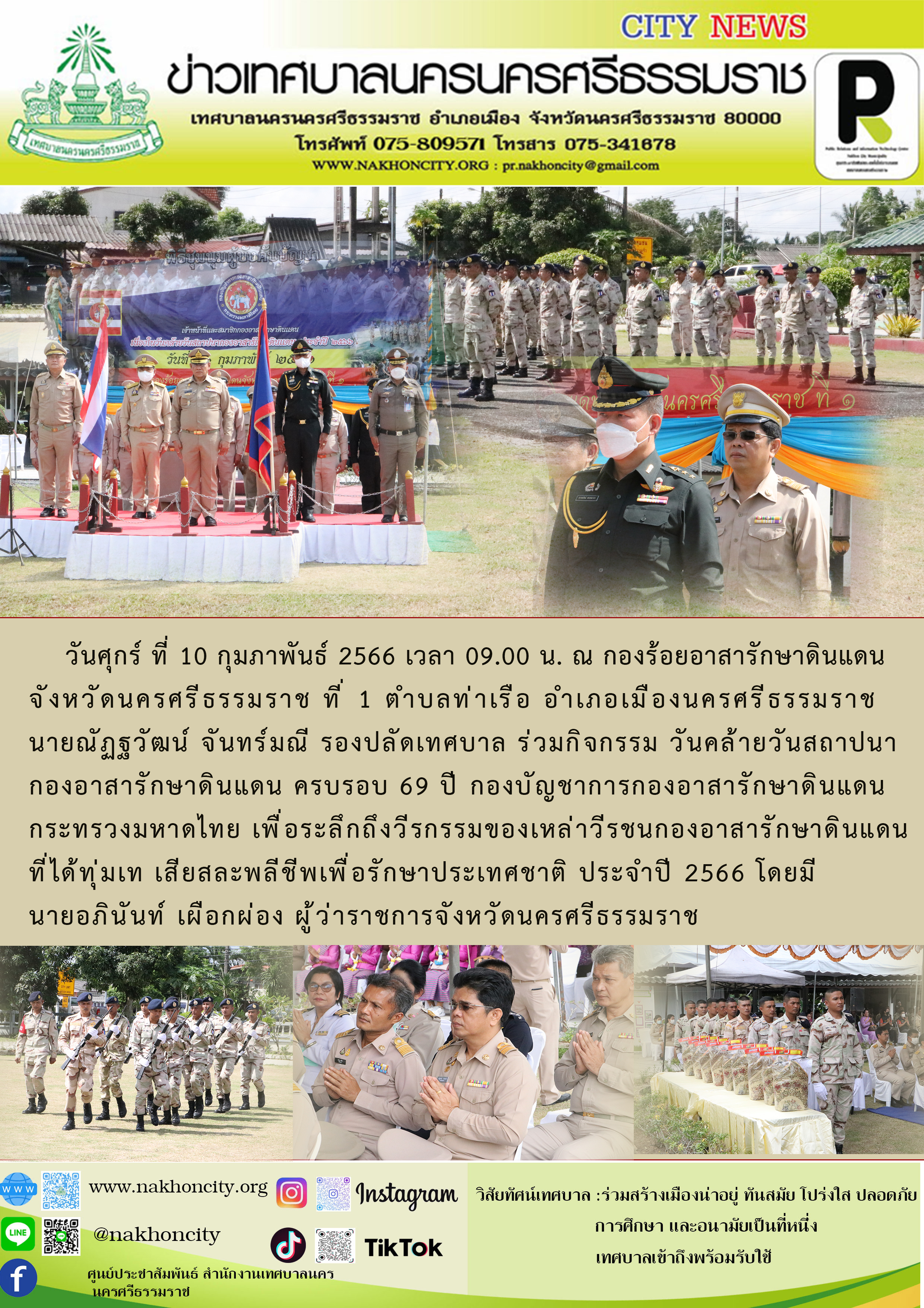 วันศุกร์ ที่ 10 กุมภาพันธ์ 2566 เวลา 09.00 น. ณ กองร้อยอาสารักษาดินแดนจังหวัดนครศรีธรรมราช ที่ 1 ตำบลท่าเรือ อำเภอเมืองนครศรีธรรมราช