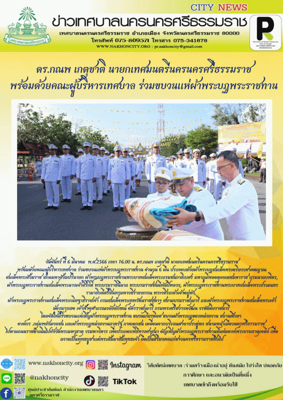 ดร.กณพ เกตุชาติ นายกเทศมนตรีนครนครศรีธรรมราช พร้อมด้วยคณะผู้บริหารเทศบาล ร่วมขบวนแห่ผ้าพระบฏพระราชทาน |