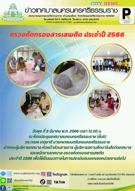 เทศบาลนครนครศรีธรรมราช ตรวจคัดกรองสารเสพติด ประจำปี 2566 |