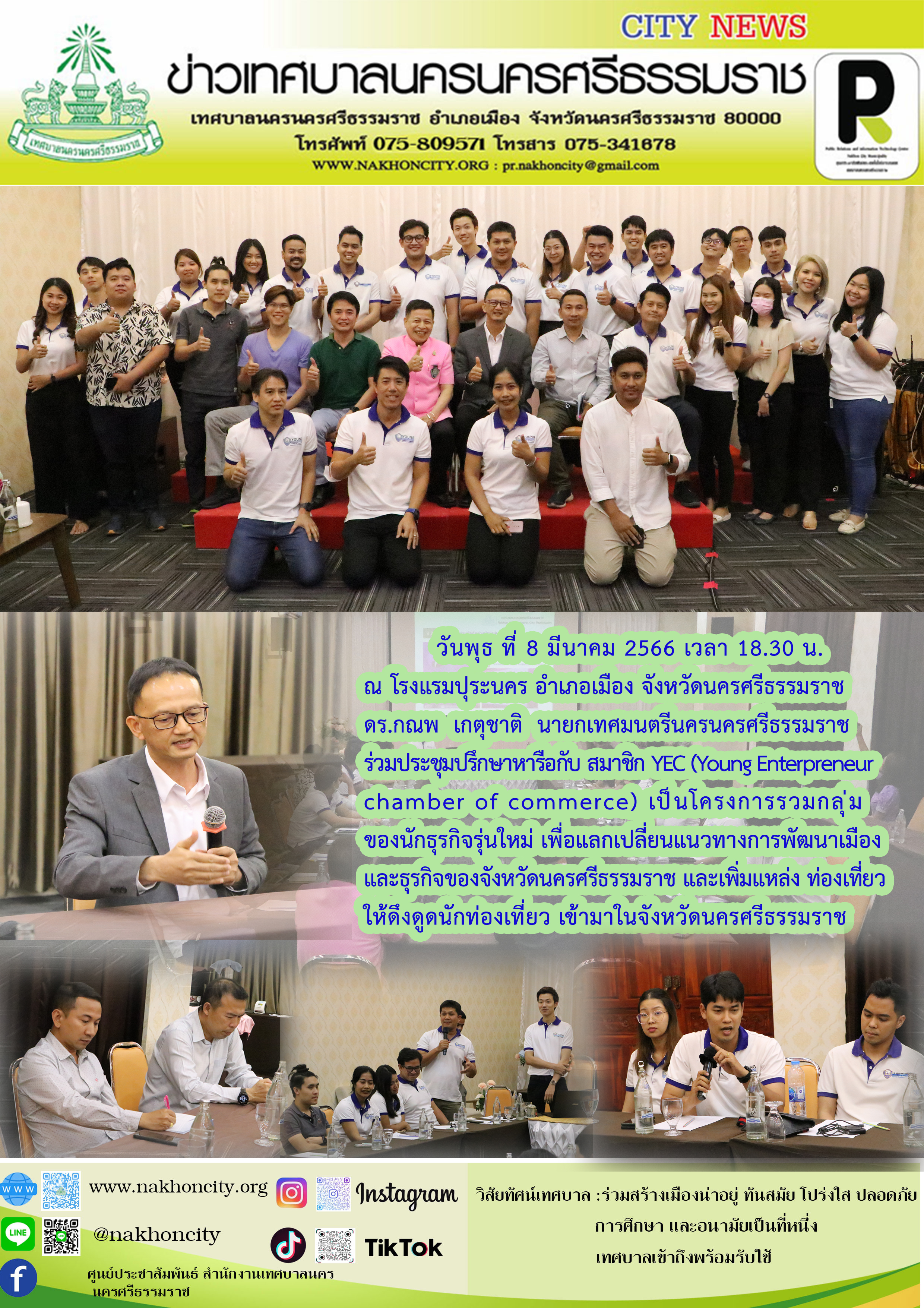 นายกเทศมนตรีนครนครศรีธรรมราช ร่วมประชุมปรึกษาหารือกับ สมาชิก YEC (Young Enterpreneur chamber of commerce) เป็นโครงการรวมกลุ่มของนักธุรกิจรุ่นใหม่ |