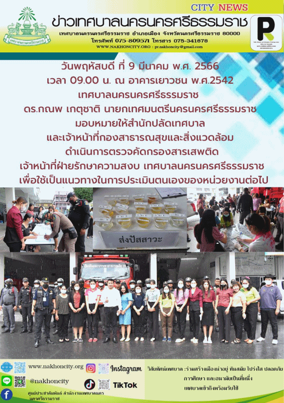 เทศบาลนครนครศรีธรรมราช ตรวจคัดกรองสารเสพติด ประจำปี 2566 |