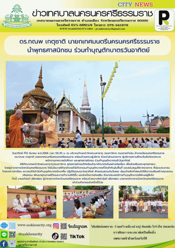 ดร.กณพ เกตุชาติ นายกเทศมนตรีนครนครศรีธรรมราช นำพุทธศาสนิกชน ร่วมทำบุญตักบาตรวันอาทิตย์ |
