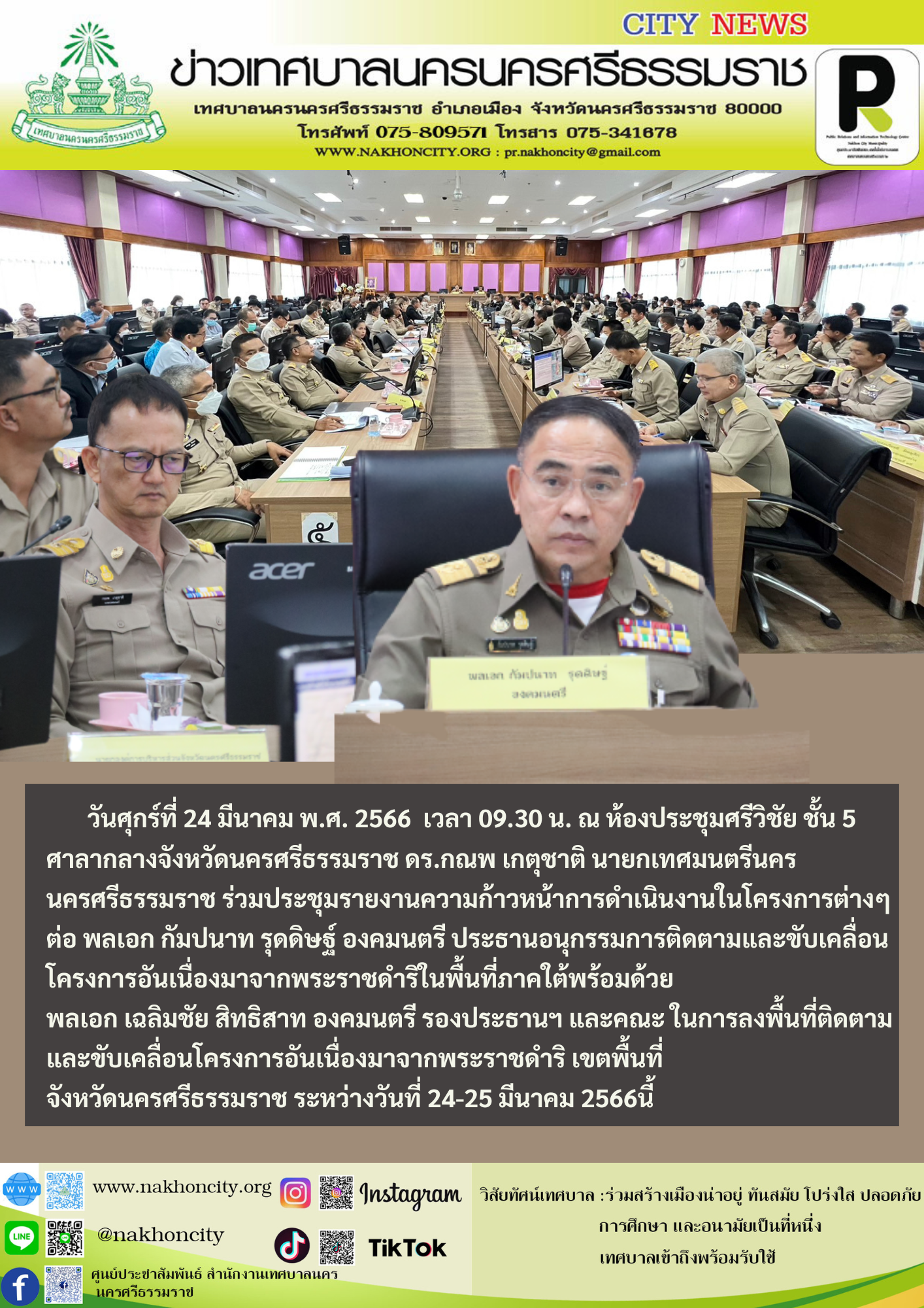 ดร.กณพ เกตุชาติ นายกเทศมนตรีนครนครศรีธรรมราช ร่วมประชุมรายงานความก้าวหน้าการดำเนินงานในโครงการอันเนื่องมาจากพระราชดำริ |