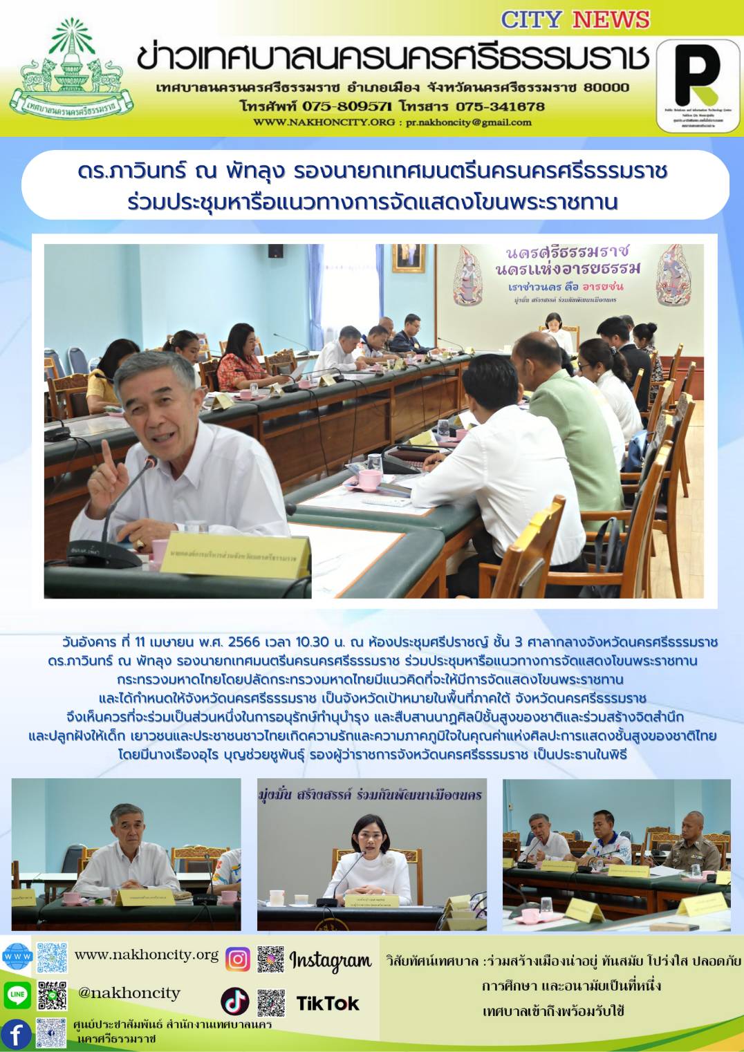 ดร.ภาวินทร์ ณ พัทลุง รองนายกเทศมนตรีนครนครศรีธรรมราช ร่วมประชุมหารือแนวทางการจัดแสดงโขนพระราชทาน |