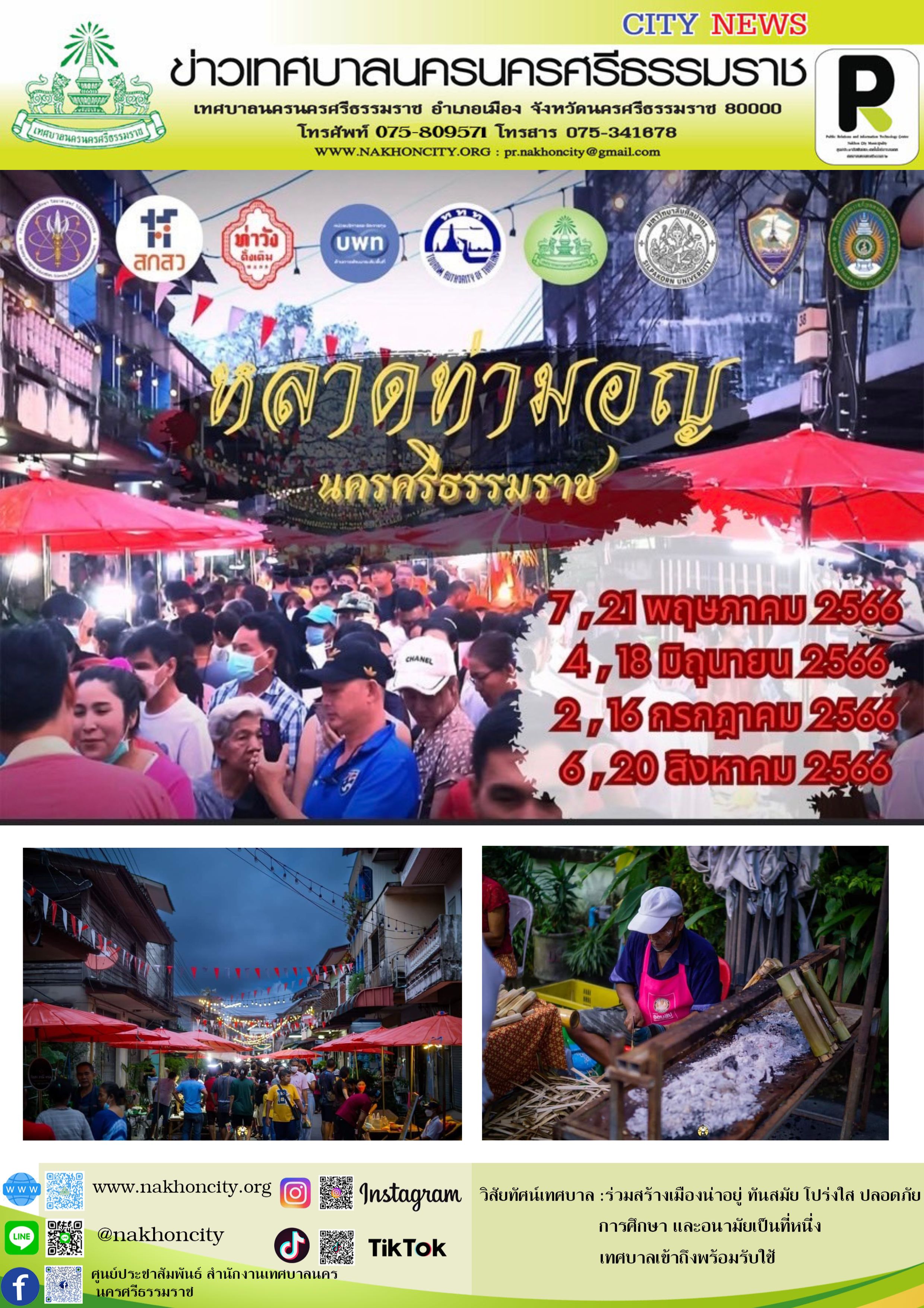 เทศบาลนครนครศรีธรรมราช ขอเชิญเที่ยวงาน “ตลาดท่ามอญ” ชุมชนเก่าแก่กลางเมืองนครศรีธรรมราช ตลาดชุมชนแบบดั้งเดิม ณ ตรอกท่ามอญ บริเวณเชิงสะพานราเมศวร์ ถนนคนเดิน แนวยาวไปจนถึงวัดศรีทวี หลาดท่ามอญเป็นการขับเคลื่อนเศรษฐกิจและสังคม โดยความร่วมมือของเทศบาลนครนครศรีธรรมราช มหาวิทยาลัยราชภัฎนครศรีธรรมราช หน่วยงานภาครัฐและเอกชน ประชาชน จัดขึ้นเพื่อให้เป็นแหล่งท่องเที่ยว สามารถสร้างรายได้แก่ชุมชนทุกเพศทุกวัย มีภาพศิลปะ มุมถ่ายภาพสวยงามเต็มไปด้วยกลิ่นอายวัฒนธรรมดั้งเดิมชุมชนชาวมอญ มีของกิน ของใช้ให้เลือกมากมายที่ชาวบ้านได้นำมาจำหน่าย และมีการแสดงพื้นเมืองของเยาวชนในชุมชน การแสดงดนตรี/ศิลปะร่วมสมัยของเยาวชน นิทรรศการ และยังมีจุดเช็คอิน เซลฟี่กับกำแพงงานศิลปะสุดว๊าว ร่วมย้อนรำลึกถึงชุมชนโบราณจากเรื่องเล่าของคนท่ามอญ สายกิน สายแช๊ะ และสายอาร์ตอีกด้วย “หลาดท่ามอญ” ท่าวัง จัดขึ้นประจำปี 2566 เดือนละ 2 ครั้ง เปิดทุกวันอาทิตย์ ตั้งแต่เวลา 15.00 -22.00 น. ดังนี้ วันที่ 7 และ วันที่ 21 พฤษภาคม 2566 วันที่ 4 และ วันที่ 18 มิถุนายน 2566 วันที่ 2 และ วันที่ 16 กรกฎาคม 2566 วันที่ 6 และ วันที่ 20 สิงหาคม 2566 สายกิน สายแช๊ะ และสายอาร์ต ห้ามพลาด ตามวันและเวลาดังกล่าว ทั้งนี้สามารถสอบถามรายละเอียดเพิ่มเติมได้ที่ ฝ่ายส่งเสริมการท่องเที่ยว สำนักปลัดเทศบาล เทศบาลนครนครศรีธรรมราช โทรศัพท์ 075-809571 ต่อ 9161