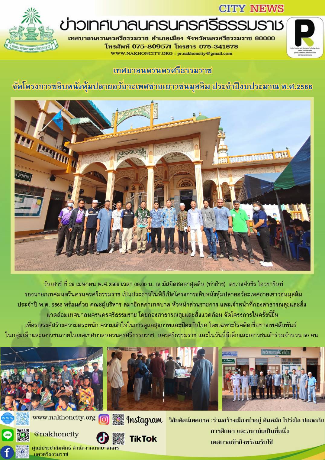 เทศบาลนครนครศรีธรรมราช จัดโครงการขลิบหนังหุ้มปลายอวัยวะเพศชายเยาวชนมุสลิม ประจำปีงบประมาณ พ.ศ.2566 |