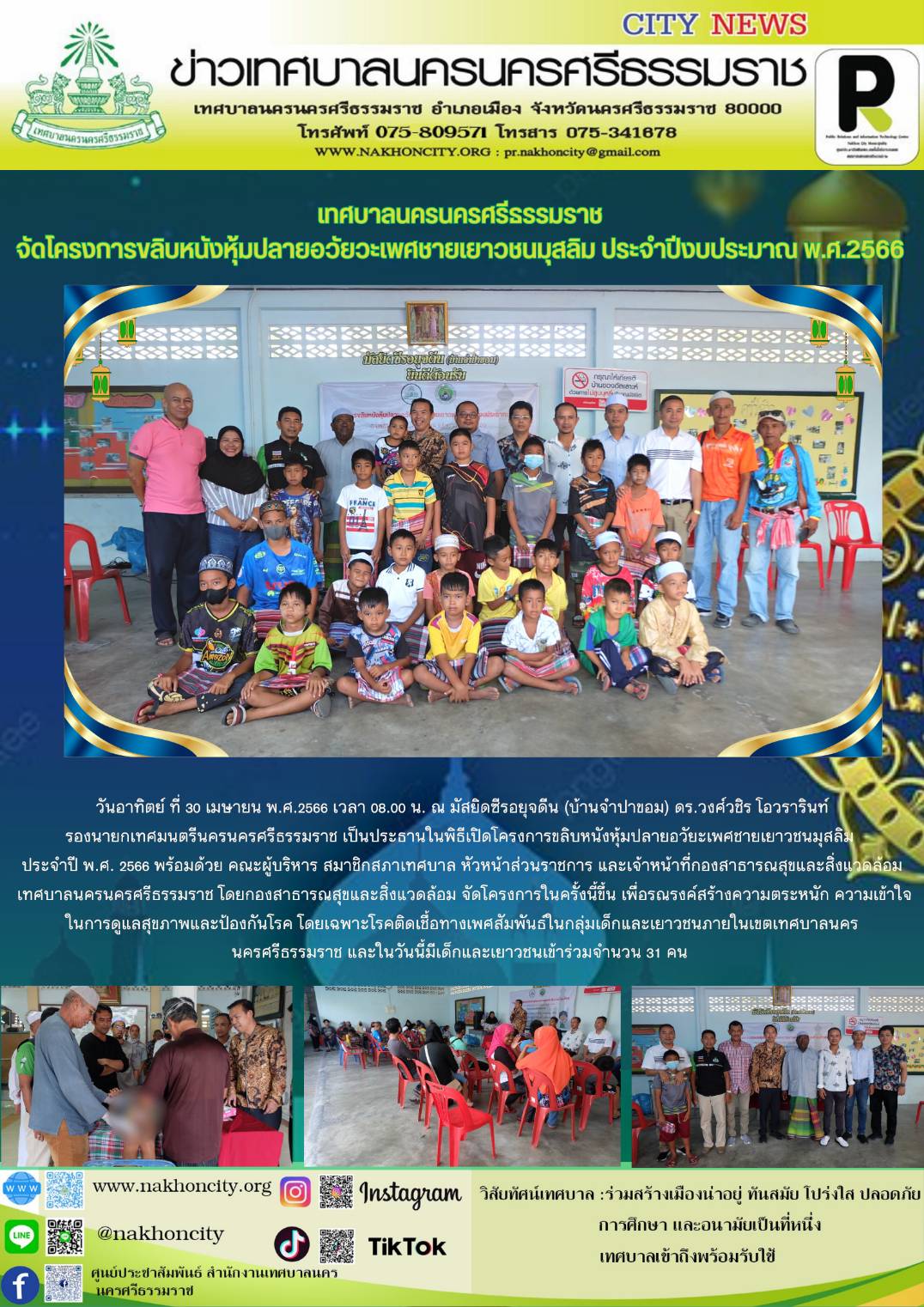 เทศบาลนครนครศรีธรรมราช จัดโครงการขลิบหนังหุ้มปลายอวัยวะเพศชายเยาวชนมุสลิม ประจำปีงบประมาณ พ.ศ.2566 |
