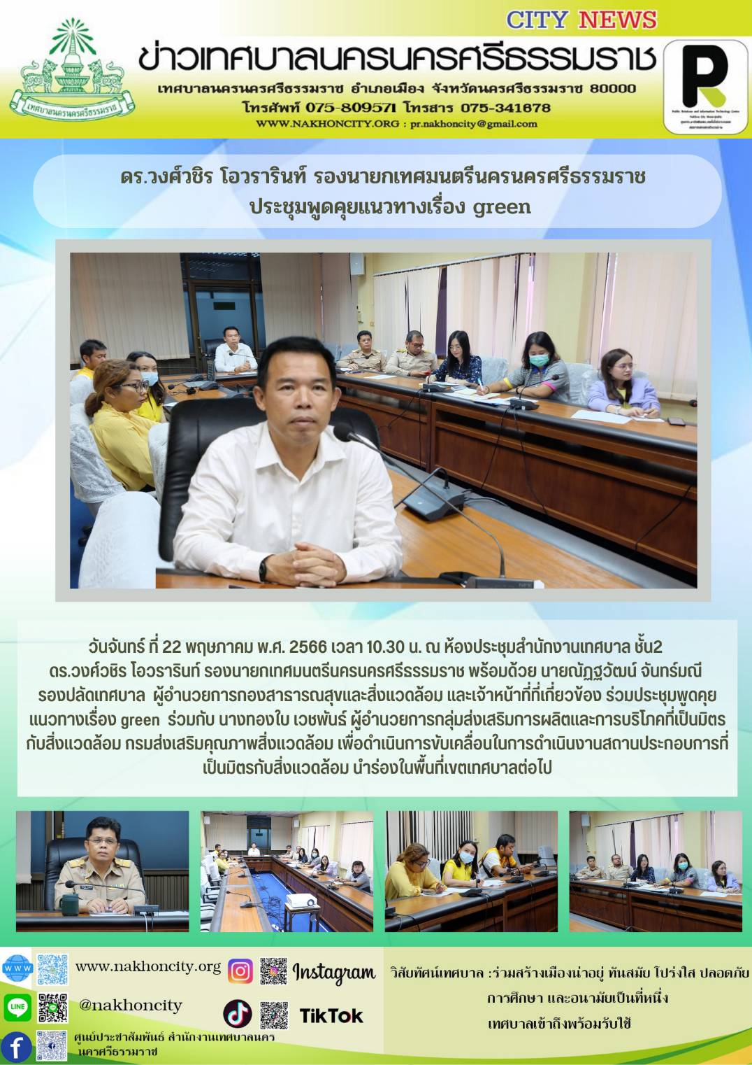ร.วงศ์วชิร โอวรารินท์ รองนายกเทศมนตรีนครนครศรีธรรมราช ร่วมประชุมพูดคุยแนวทางเรื่อง green |