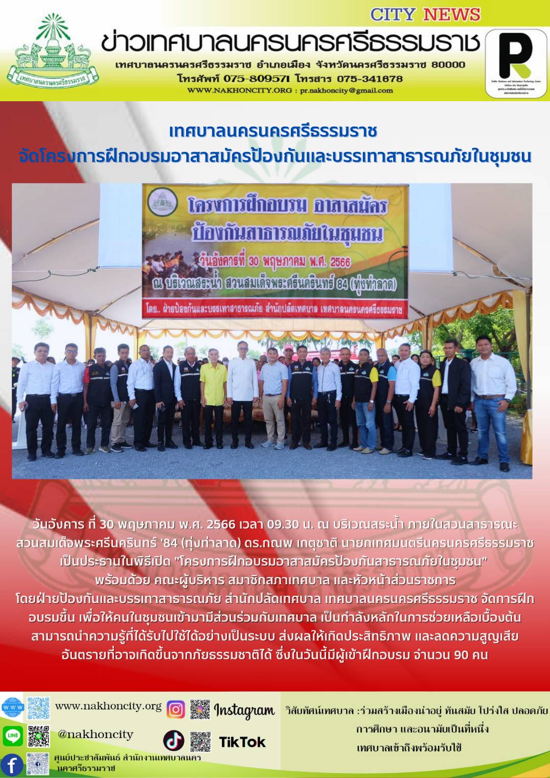 เทศบาลนครนครศรีธรรมราช จัดโครงการฝึกอบรมอาสาสมัครป้องกันและบรรเทาสาธารณภัยในชุมชน |
