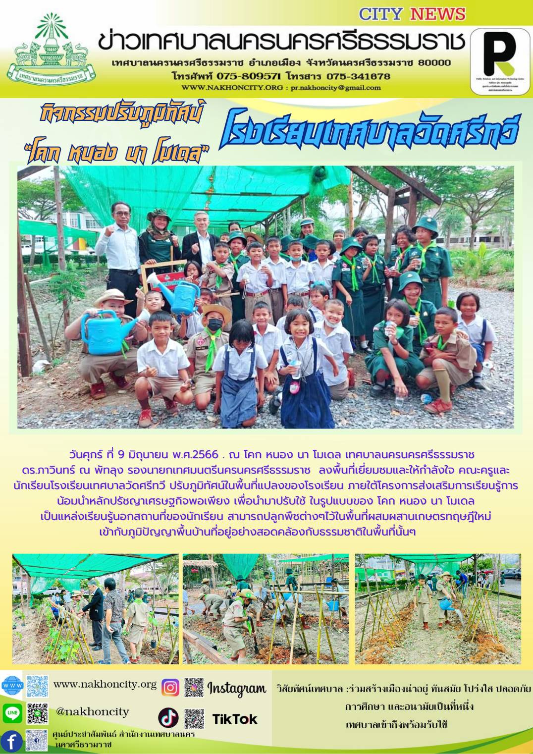 วันศุกร์ ที่ 9 มิถุนายน พ.ศ.2566 . ณ โคก หนอง นา โมเดล เทศบาลนครนครศรีธรรมราช ดร.ภาวินทร์ ณ พัทลุง รองนายกเทศมนตรีนครนครศรีธรรมราช ลงพื้นที่เยี่ยมชมและให้กำลังใจ คณะครูและนักเรียนโรงเรียนเทศบาลวัดศรีทวี ปรับภูมิทัศน์ในพื้นที่แปลงของโรงเรียน ภายใต้โครงการส่งเสริมการเรียนรู้การน้อมนำหลักปรัชญาเศรษฐกิจพอเพียง เพื่อนำมาปรับใช้ ในรูปแบบของ โคก หนอง นา โมเดล เป็นแหล่งเรียนรู้นอกสถานที่ของนักเรียน สามารถปลูกพืชต่างๆไว้ในพื้นที่ผสมผสานเกษตรทฤษฎีใหม่ เข้ากับภูมิปัญญาพื้นบ้านที่อยู่อย่างสอดคล้องกับธรรมชาติในพื้นที่นั้นๆ ………… ข่าว//จันทร์จิรา |