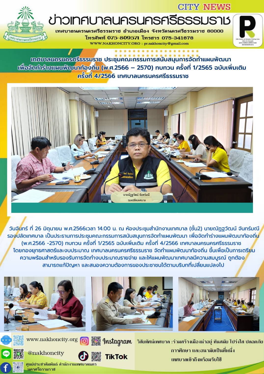 เทศบาลนครนครศรีธรรมราช ประชุมคณะกรรมการสนับสนุนการจัดทำแผนพัฒนา เพื่อจัดทำร่างแผนพัฒนาท้องถิ่น (พ.ศ.2566 – 2570) ทบทวน ครั้งที่ 1/2565 ฉบับเพิ่มเติม ครั้งที่ 4/2566 เทศบาลนครนครศรีธรรมราช |