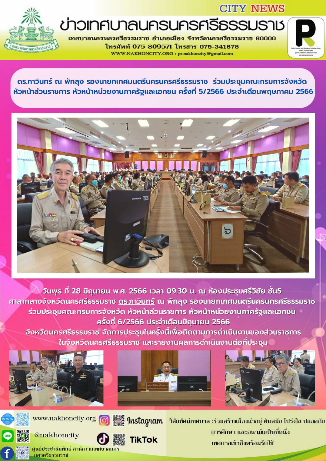 ดร.ภาวินทร์ ณ พัทลุง รองนายกเทศมนตรีนครนครศรีธรรมราช ร่วมประชุมคณะกรมการจังหวัด หัวหน้าส่วนราชการ หัวหน้าหน่วยงานภาครัฐและเอกชน ครั้งที่ 6/2566 ประจำเดือนมิถุนายน 2566 |