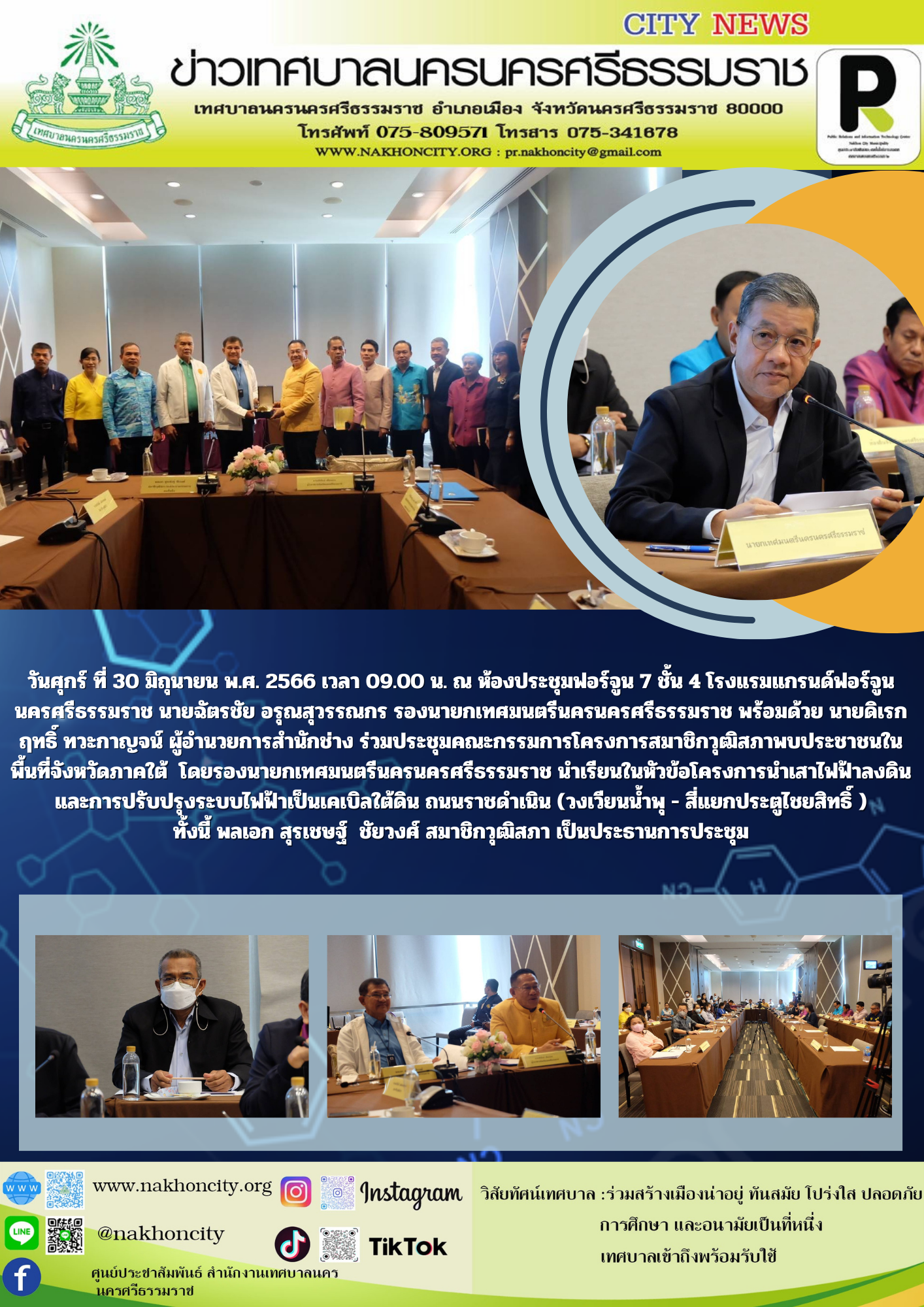 นายฉัตรชัย อรุณสุวรรณกร รองนายกเทศมนตรีนครนครศรีธรรมราช พร้อมด้วย นายดิเรกฤทธิ์ ทวะกาญจน์ ผู้อำนวยการสำนักช่าง ร่วมประชุมคณะกรรมการโครงการสมาชิกวุฒิสภาพบประชาชนในพื้นที่จังหวัดภาคใต้ |