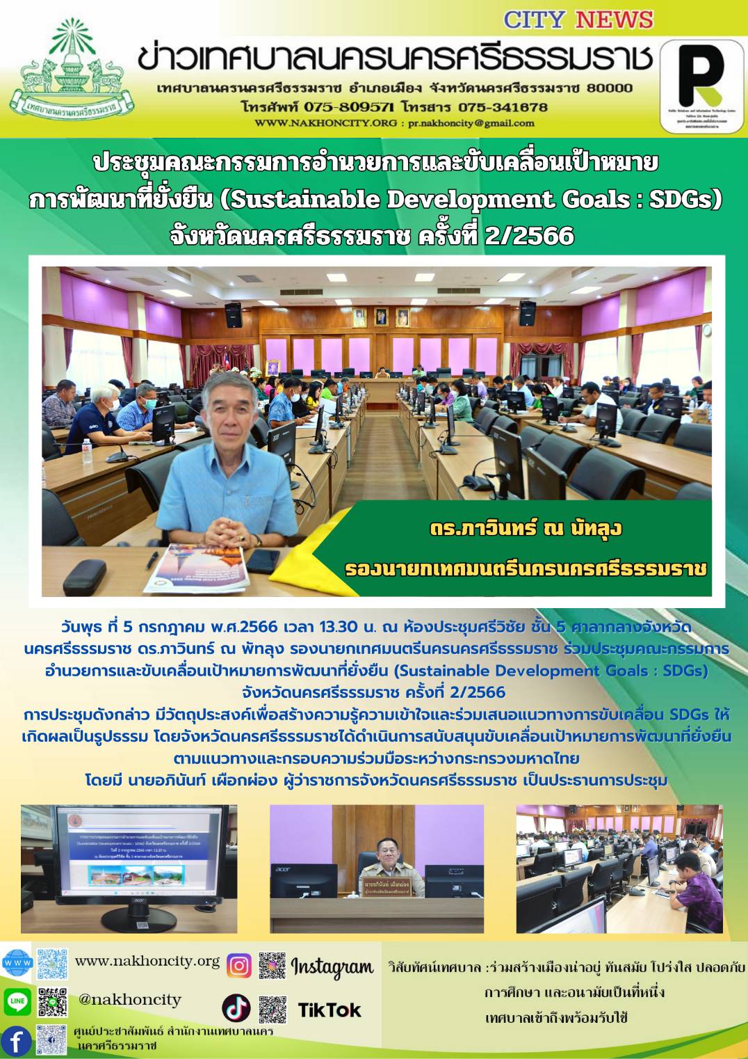 ดร.ภาวินทร์ ณ พัทลุง รองนายกเทศมนตรีนครนครศรีธรรมราช ร่วมประชุมคณะกรรมการอำนวยการและขับเคลื่อนเป้าหมายการพัฒนาที่ยั่งยืน (Sustainable Development Goals : SDGs) จังหวัดนครศรีธรรมราช ครั้งที่ 2/2566 |