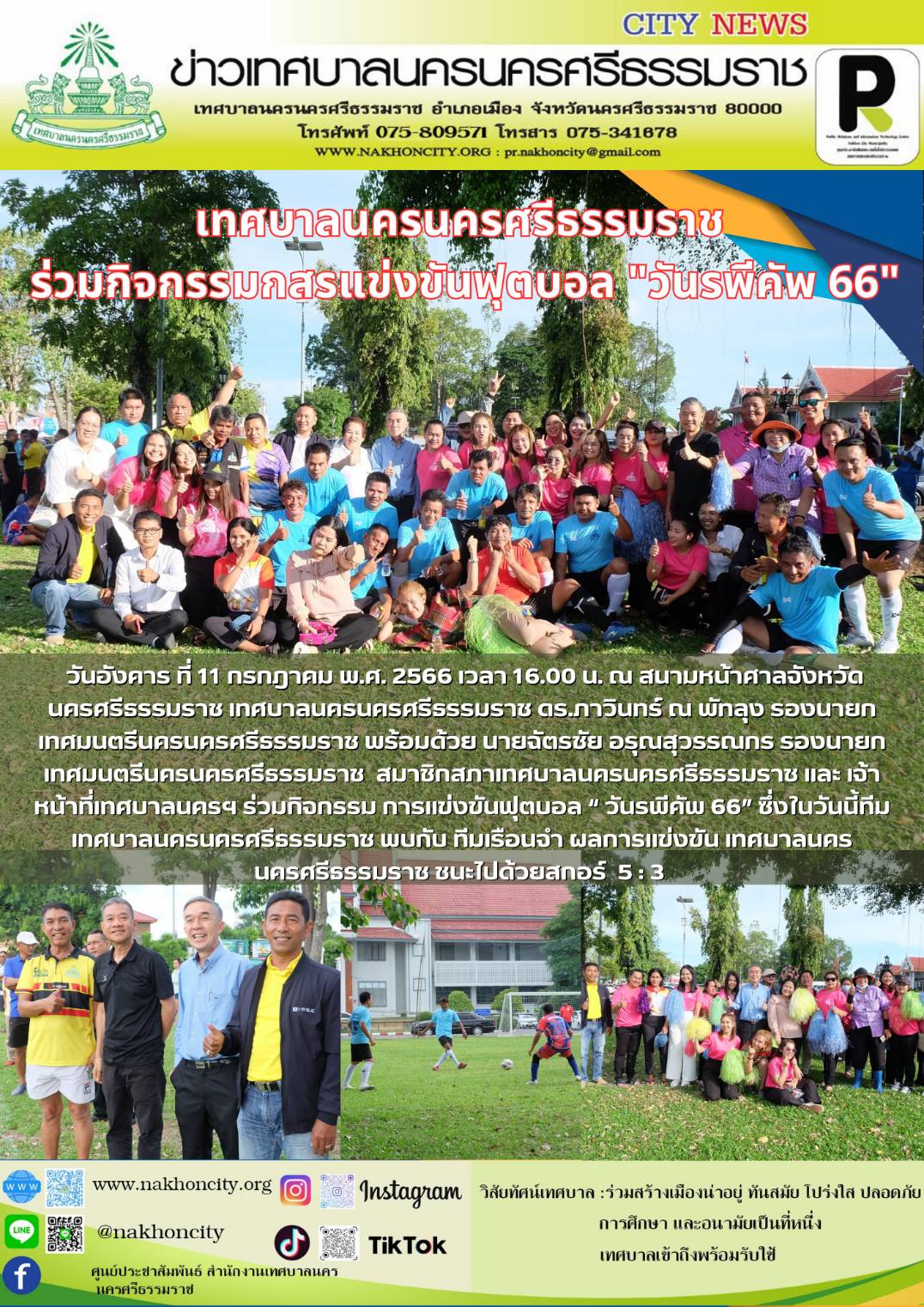 เทศบาลนครนครศรีธรรมราช ร่วมกิจกรรม การแข่งขันฟุตบอล “ วันรพีคัพ 66” |