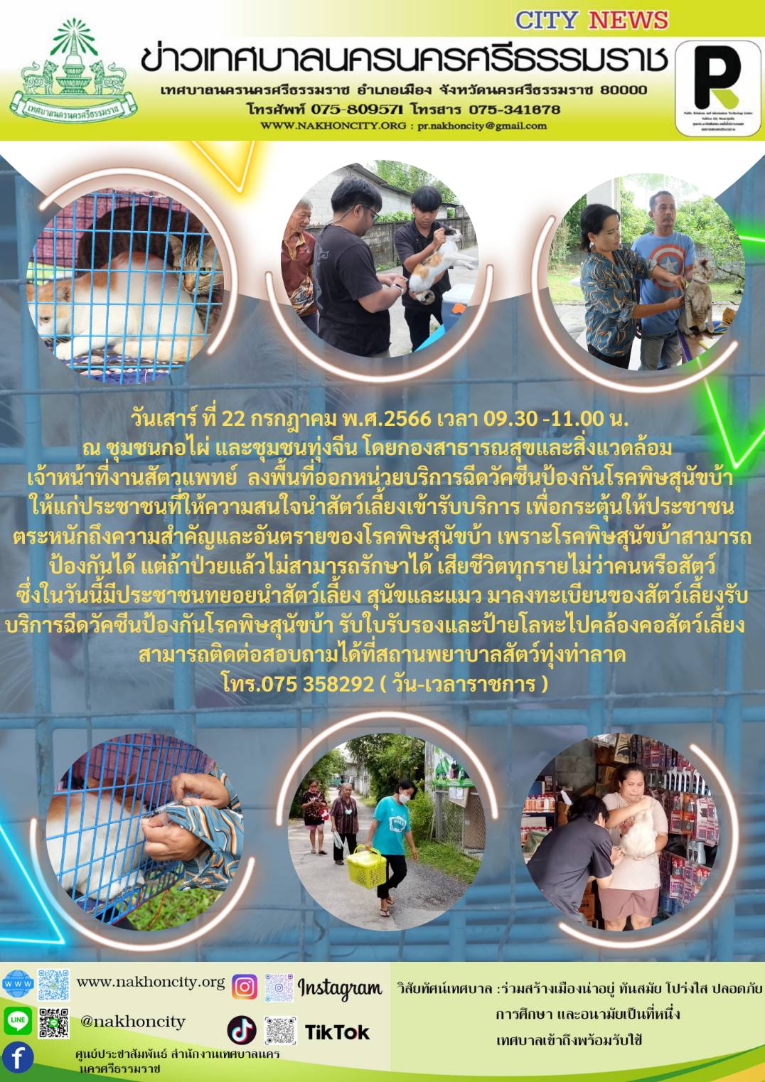 กองสาธารณสุขและสิ่งแวดล้อมงานสัตวแพทย์ ลงพื้นที่ออกหน่วยบริการฉีดวัคซีนป้องกันโรคพิษสุนัขบ้า |
