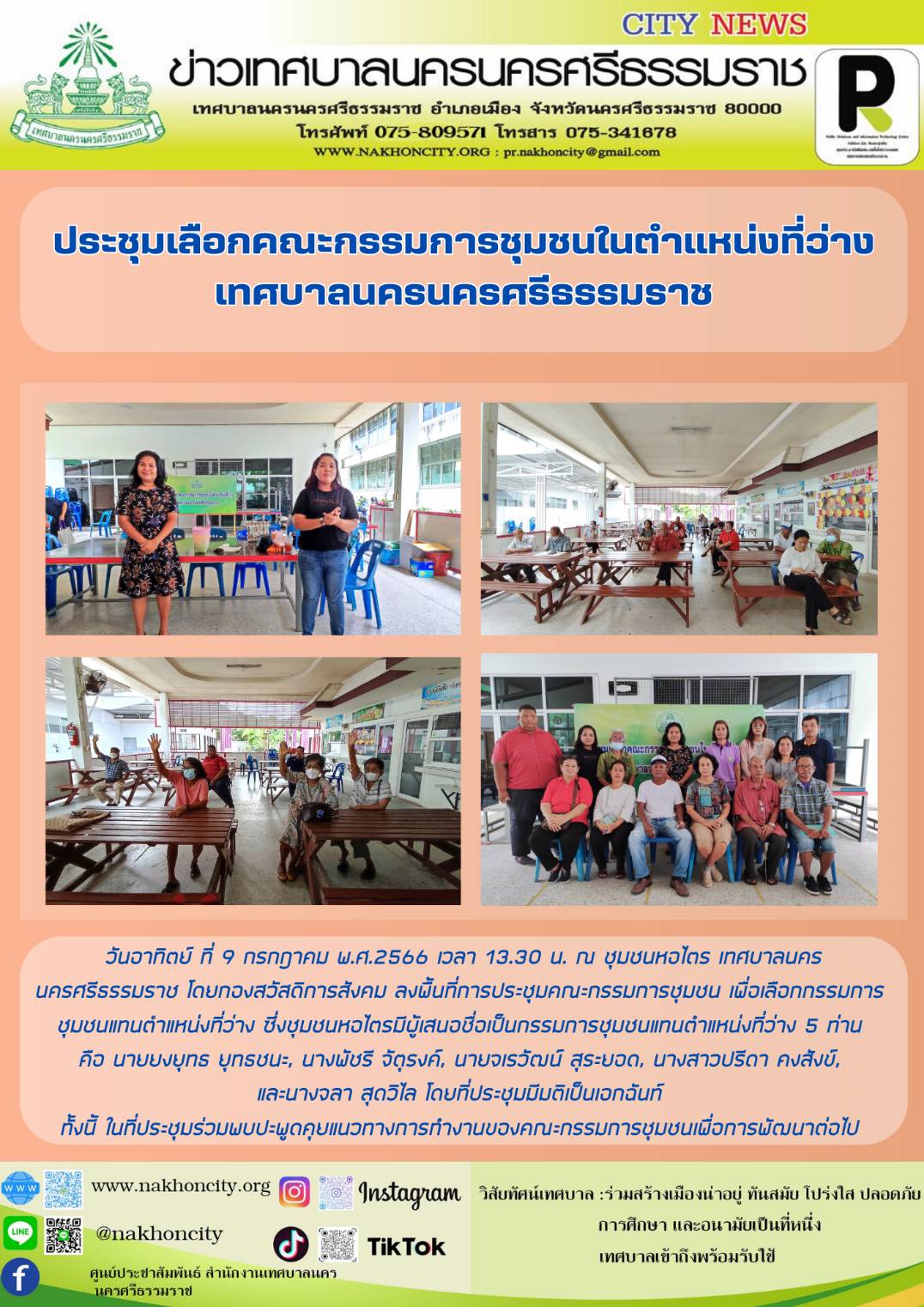 เทศบาลนครนครศรีธรรมราช โดยกองสวัสดิการสังคม ลงพื้นที่การประชุมคณะกรรมการชุมชน เพื่อเลือกกรรมการชุมชนแทนตำแหน่งที่ว่าง |