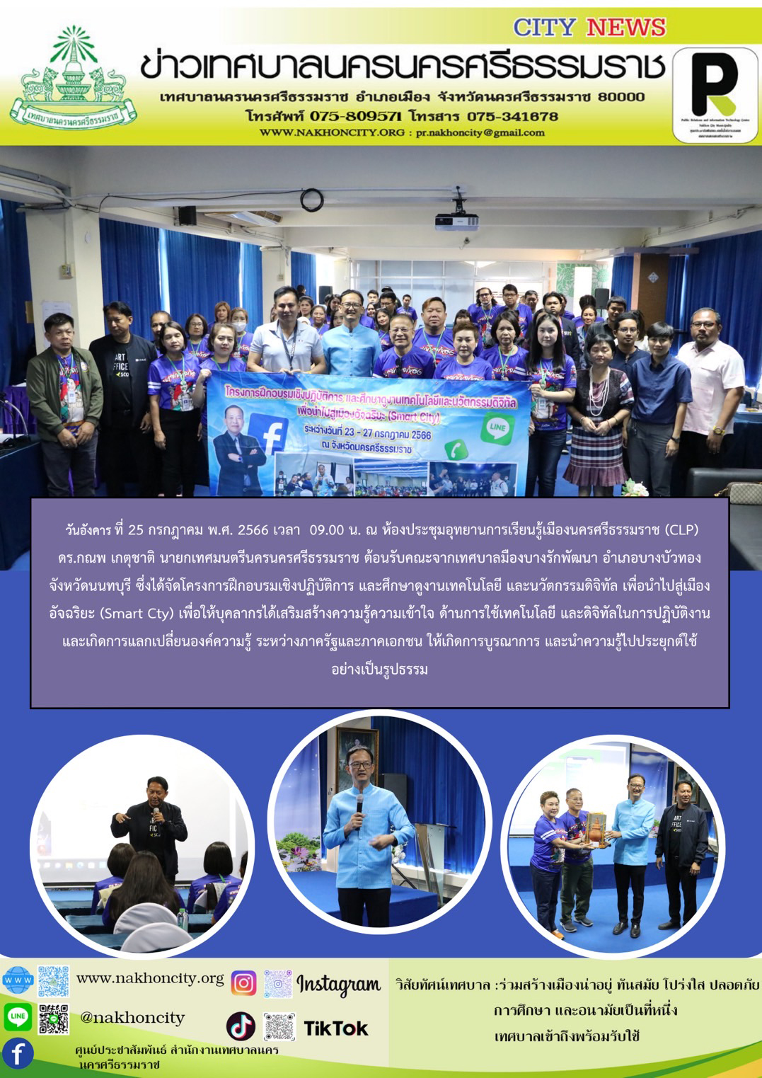 วันอังคาร ที่ 25 กรกฎาคม พ.ศ. 2566 เวลา 09.00 น. ณ ห้องประชุมอุทยานการเรียนรู้เมืองนครศรีธรรมราช (CLP)